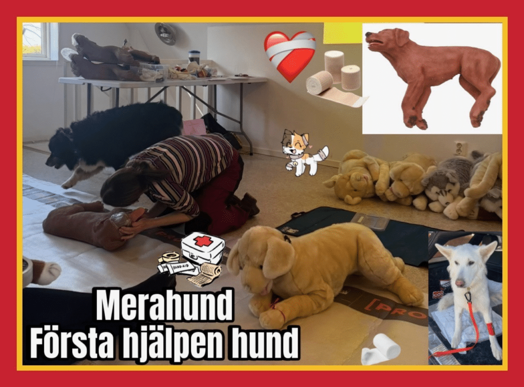 Under föreläsningen kommer vi att varva teori och praktiska övningar på hund-dockor. Vi går igenom kontroll av livstecken, andning, fria luftvägar, puls, hjärt-lungräddning, luftvägsstopp, stoppa blödning. Akuta livshotande tillstånd så som ex huggormsbett, magomvridning, livmoderinflammation, förgiftning, överhettning/nedkylning mm. Första hjälpen handlar om hur du kan rädda livet på hunden samt hur du förhindrar ett kritiskt tillstånd att förvärras. Utbildningen sker enligt riktlinjer från Djursjukvård, Akutsjukvård för hund, Trauma Hund och Vård i det vilda.
